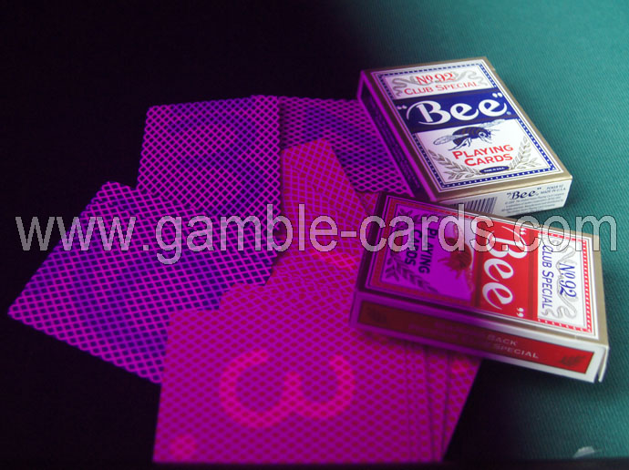 Bee cartões de jogo com luzes de presença são especialmente concebidos para um desempenho impressionante! Cartões de abelha têm normalmente a extremidade traseira, de modo que o revestimento de cada placa que está apenas parcialmente revelou claramente visível. No entanto, o papel traseiro de diamantes padrão muito regular e de perfil baixo comparado com outros desenhos de volta, o "bottom-dealing" e faz com que outras formas de mão destreza.